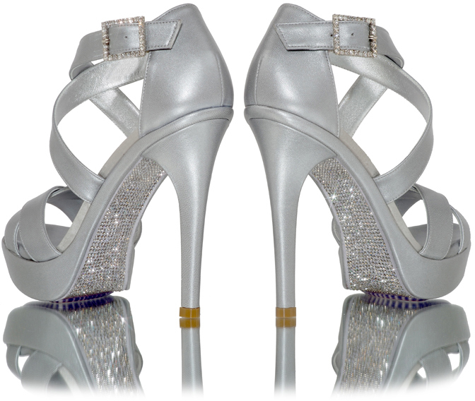 Shown in Argento Perlato with Unique Silver Shade Crystal Sole